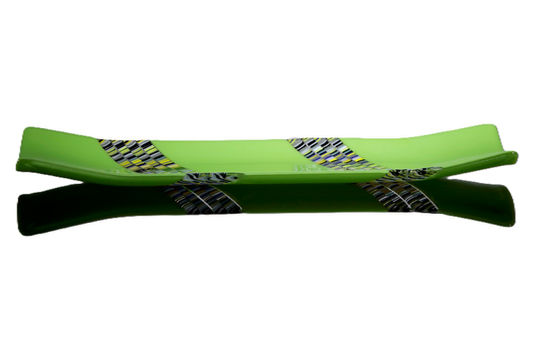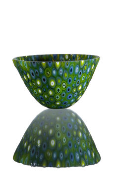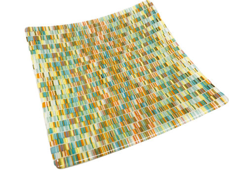 Jill creates contemporary studio glass; unique, one-off pieces exploiting the bold colours and visual properties of glass. On style: “My style is certainly informed by a geometric, balanced, aesthetic and for almost 10 years, the “tapestry” technique has underpinned my work with much still to explore.” On influence: “What influences me today, may not feel front of mind next week. However, I admire Bauhaus design aesthetics and my favourite artist, by a whisker, is Kandinsky, especially the abstracts. In contrast I also love Gaudi for outrageous exuberance. I have a passion for plants and nature’s colour combinations, where there are no rules.” “Glass allows me to explore almost endless colour combinations from subtle to outrageous and I’m currently in the experimental phase with 3- dimensional fusing and hand manipulation of warm glass. The latter process allows just a brief time to coax the glass into shape before it is too stiff (cool) for further ‘work’. The results are bold and organic and I’m excited to add this hands-on ‘twist’ to my future work.”